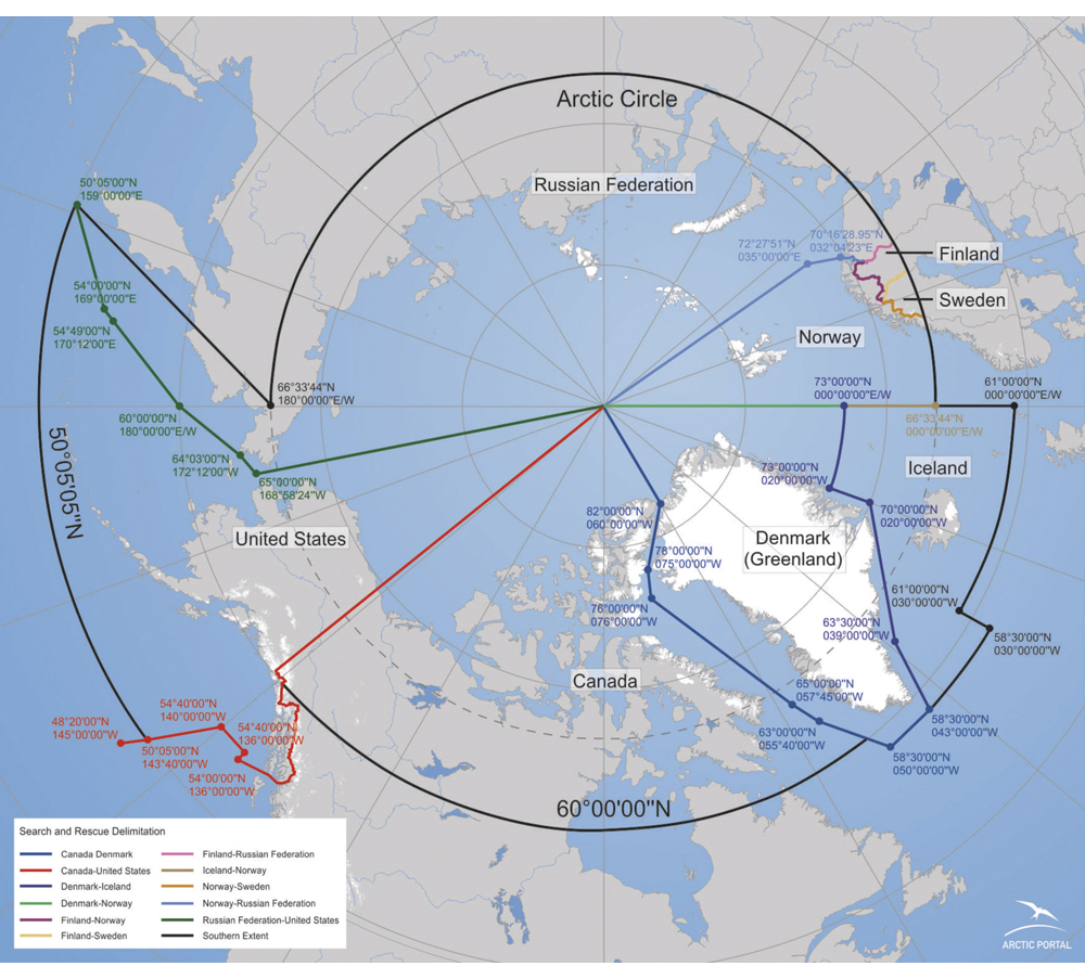 Norge undertegnet i 2011 en avtale med Canada, Danmark, Finland, Island, Russland, Sverige og USA om samarbeid om søk og redning i forbindelse med luft- og sjøfart i Arktis. Norges ansvarsområde for søk og redning ble dermed utvidet ved at Norge tok ansvar lenger øst mot russisk ansvarsområde, og nord for Svalbard helt opp til polpunktet, se figur 15.1. Avtalen, som trådte i kraft 19. januar 2013, etablerer et mer forpliktende redningssamarbeid, herunder en bedre regional organisering av søk og redning i Arktis.