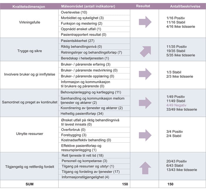 Her oppsummeres status for 2015. Per november 2016 er det utviklet i alt 159 nasjonale kvalitetsindikatorer.