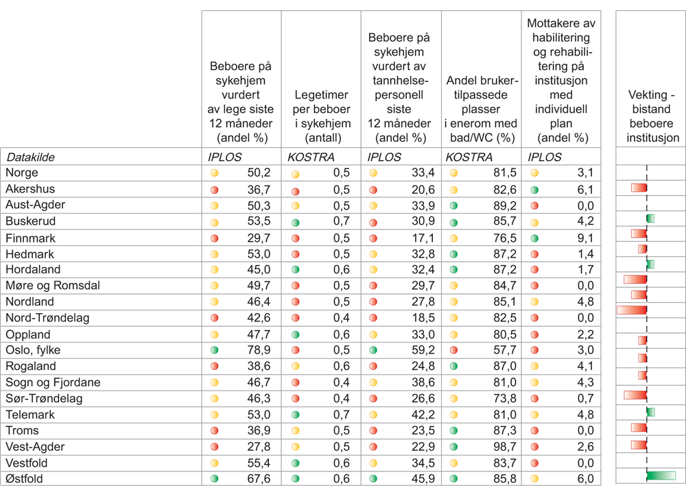 Fargekodene er basert på resultatene i helsenorge.no, som har mer enn én desimal. Dette forklarer at fylker med tilsynelatende samme resultat har ulike fargekoder.