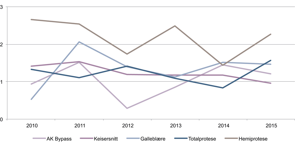 Meniskoperasjon | Møre og Romsdal (491) | Stavanger (119) | 4,13 |