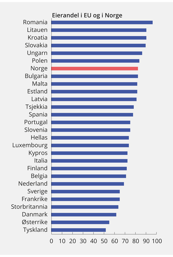 Kilde: Statistisk sentralbyrå og Statista. Statista.com. Home ownership rate in Europe.
