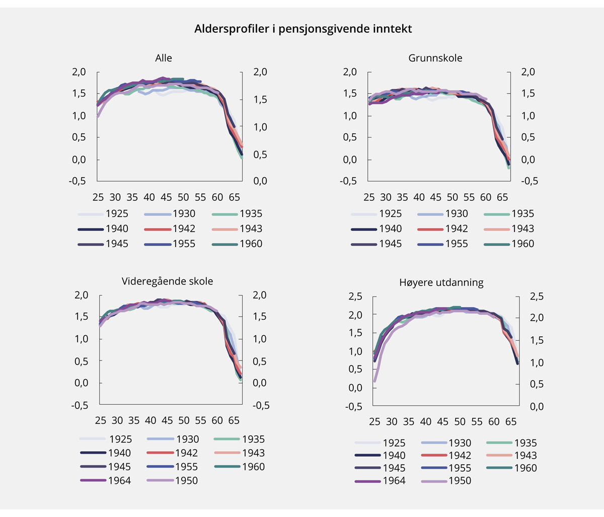Figur 2.26 Aldersprofiler i pensjonsgivende inntekt