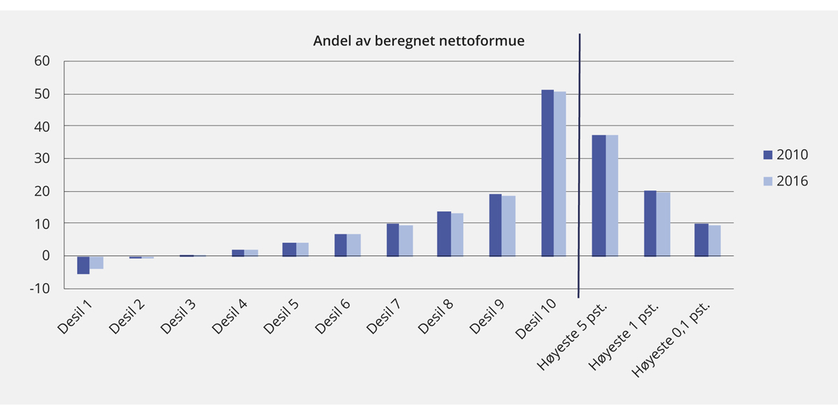 Figur 2.8 Andel av beregnet nettoformue. 2010 og 2016