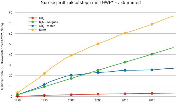 Regjeringa og jordbruksorganisasjonane har ein intensjonsavtale om utsleppskutt og auka opptak som samla skal utgjere 5 millionar tonn CO2-ekvivalentar over perioden. Avtalen omfattar klimatiltak som kan godskrivast all jordbruksaktivitet innanfor sektorane jordbruk, transport, oppvarming av bygg og arealbrukssektoren (unnateke skog) i den offisielle klimagassrekneskapen. Da avtalen i tillegg krediterer reduksjonar i utslepp som blir gjorde i andre sektorar enn jordbruket, legg regjeringa til grunn ein reduksjon bokført i jordbrukssektoren på 4 millionar CO2-ekvivalentar over perioden.