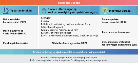 Figur 6.2 Oversikt over EUs niande rammeprogram for forsking og innovasjon Horisont Europa.