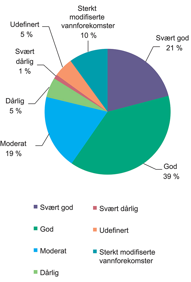 Figuren viser økologisk tilstand på overflatevann i Norge.