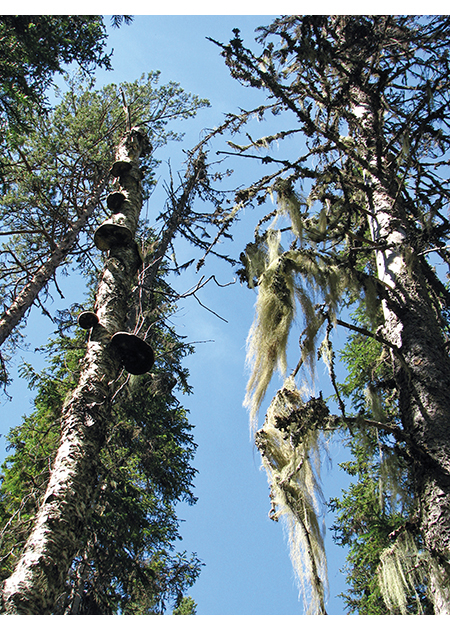 Figur 2.13 Skogen er levested for mer enn halvparten av alle kjente arter i Norge. Sopp, lav og insekter er de største gruppene. Mange lever på gamle eller døde trær, som her i Vassfaret.