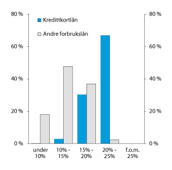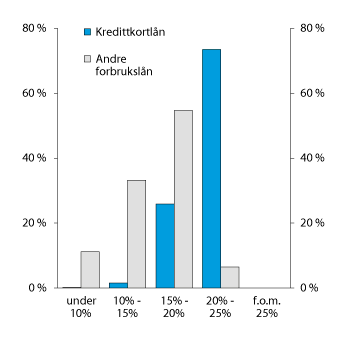 Forbrukslån til norske husholdninger utgjorde rundt 100 mrd. kroner ved utgangen av 2017, det vil si om lag 3 pst. av husholdningenes samlede gjeld. Kredittkortlån utgjør om lag halvparten av forbrukslånene. Kredittkortlån er normalt rentefrie i en periode på 30–60 dager etter varekjøp, og rundt 30 pst. av kredittkortgjelden tilbakebetales i løpet av den rentefrie perioden.