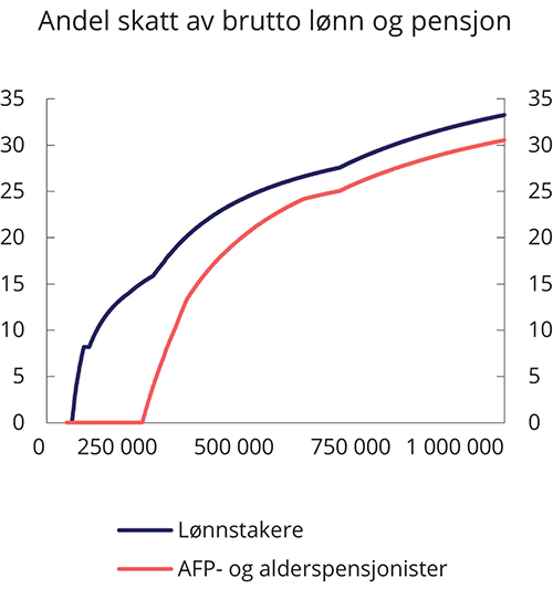 Som følge av pensjonsreformen vil flere jobbe lenger, noe som øker verdiskapingen og skatteinntektene. Samtidig vil den langsiktige veksten i utgiftene til alderspensjon bli betydelig lavere enn den ellers ville vært, hovedsakelig som følge av levealdersjusteringen. I tillegg bidrar lavere årlig regulering av pensjon under utbetaling for de eldste årskullene til lavere vekst i utgiftene. Arbeids- og velferdsdirektoratet anslår at utgiftene til alderspensjon i 2030 blir 6 pst. eller 20 mrd. kroner lavere enn hva som hadde vært tilfelle uten pensjonsreformen.2 Pensjonsreformen ble påbegynt i 2001 som et tverrpolitisk arbeid og er forberedt og gjennomført av ulike regjeringer de siste tyve årene. Virkninger av reformen er nærmere omtalt i boks 7.3.