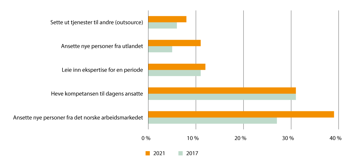 NHOs Kompetansebarometer dekker NHOs medlemsbedrifter og er ikke representativt for hele arbeidslivet.