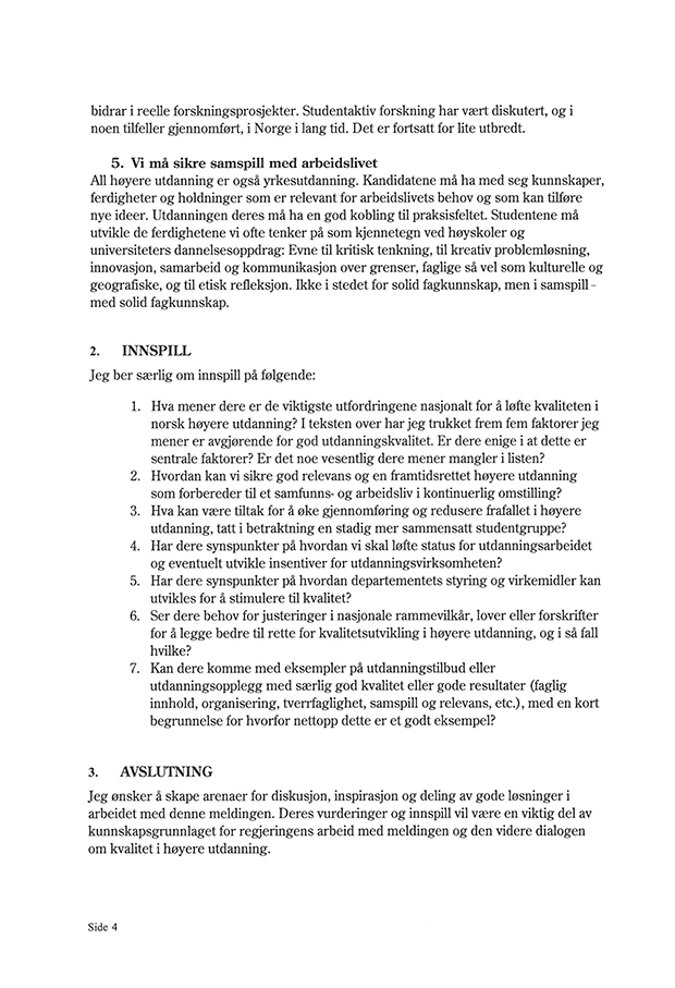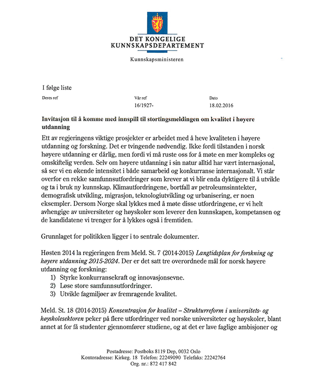 1 Invitasjon til å gi innspill til arbeidet med stortingsmeldingen