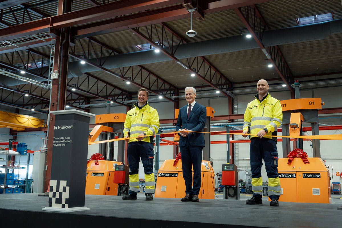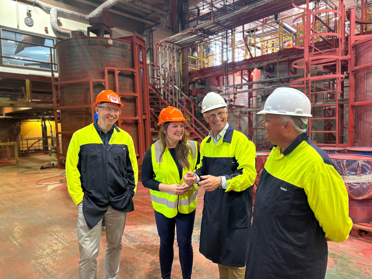 Figur 1.4 Næringsminister Cecilie Myrseth på besøk hos industribedriften Nordox i Oslo i forbindelse med lansering av arbeidet med industrimeldingen. F.v. leder i Forbundet Styrke Frode Alfheim, direktør i Nordox Lars Thomasgaard og leder i Fellesforbundet Jørn Eggum.