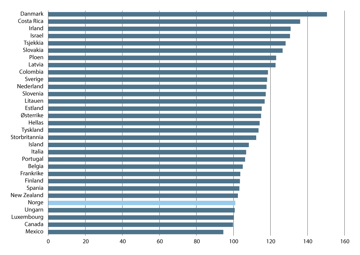 Kilde: OECD og Finansdepartementet (2023), Meld. St. 1 (2023–2024) Nasjonalbudsjettet 2024.