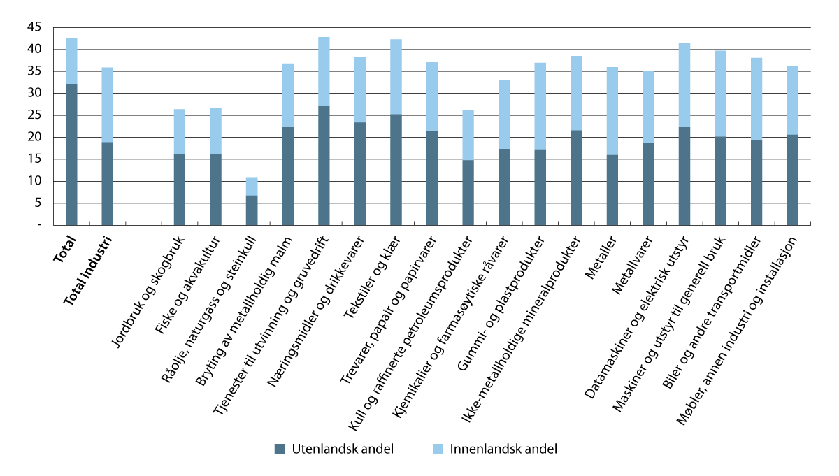 Internasjonal handel og global arbeidsdeling er i all hovedsak positivt for Norge. Innbyggere og bedrifter i Norge får tilgang til et bredt utvalg av varer fra andre land, og norske varer og tjenester kan selges i et stort marked utenfor landets grenser. Internasjonal handel gir muligheter for spesialisering og stordriftsfordeler i større markeder og til å frikoble hva som produseres fra hva som forbrukes. I tillegg fører handel og investeringer på tvers av landegrenser til at norske bedrifter deltar i kunnskaps- og teknologiutviklingen i internasjonale markeder og at de skjerpes i møte med den globale konkurransen. Dette har over tid muliggjort en betydelig velstandsøkning for samfunnet. Tilgang til internasjonale markeder vil være avgjørende for å sikre at Norge har en høyproduktiv, verdiskapende, omstillingsdyktig og innovativ industri.