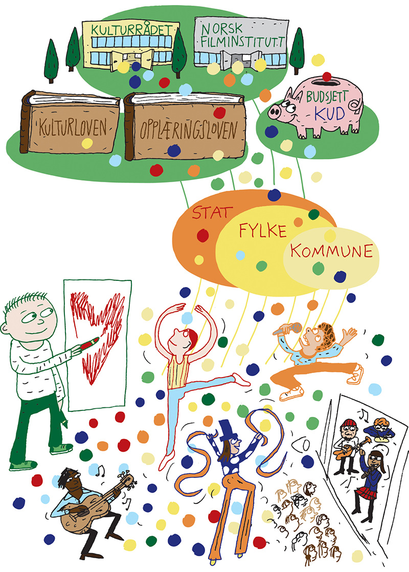 Barne- og ungdomskultur er ei nasjonal satsing der både staten, fylkeskommunane og kommunane har verkemiddel og tiltak. For å oppnå dei nasjonale måla er det derfor viktig at alle desse tre forvaltningsnivåa jobbar saman.