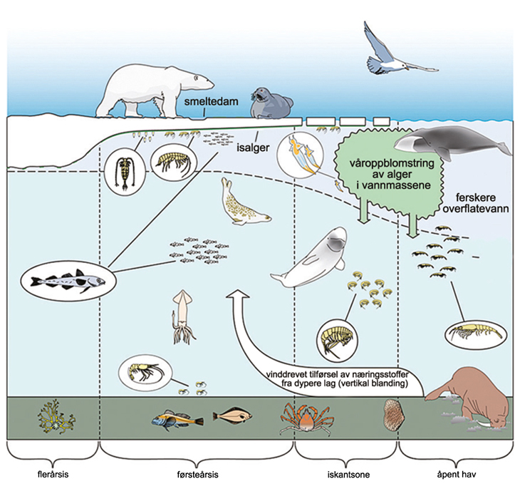 Figur 2.13 Økosystemet i iskantsonen under våroppblomstringen.
