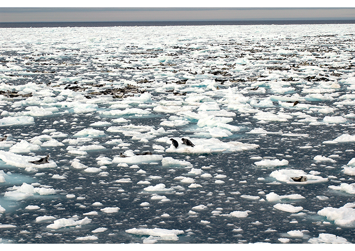Figur 2.18 Ansamling av grønlandssel i iskantsonen.