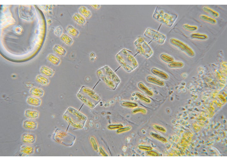 Figur 2.3 Mikroskopiske alger i iskantsonen. Vanlige planteplanktonarter fra en våroppblomstring.