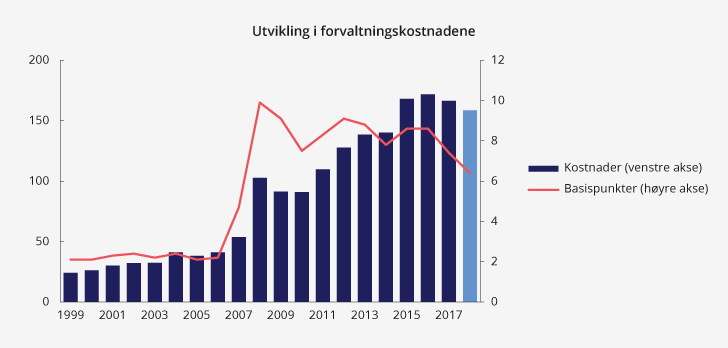 Det er mulig å anslå hvor mye av dagens kostnader som ville påløpt også ved passiv forvaltning og hvor mye som kan tilskrives Folketrygdfondets aktive forvaltning. Slike anslag vil imidlertid være usikre. I rapporten fra konsulentselskapet CEM Benchmarking Inc.13 er forvaltningskostnadene ved en tenkt passiv forvaltning av SPN vurdert med utgangspunkt i kostnader for andre fond. Kostnadene ved passiv forvaltning anslås i rapporten til i størrelsesorden fem basispunkter i 2017. Det er noe lavere enn de faktiske forvaltningskostnadene for SPN på syv basispunkter samme år.