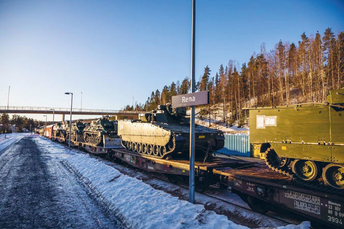 Figur 8.9 Transport av militære kjøretøy. Foto fra NATO-øvelsen Trident Juncture i 2018.