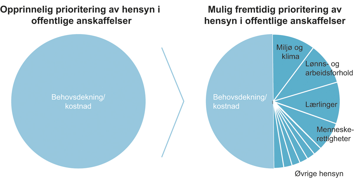 Oslo Economics og Inventura. Utarbeidet for Nærings- og fiskeridepartementet. (2018). Virkninger av nye samfunnshensyn i offentlige anskaffelser, s. 15.
