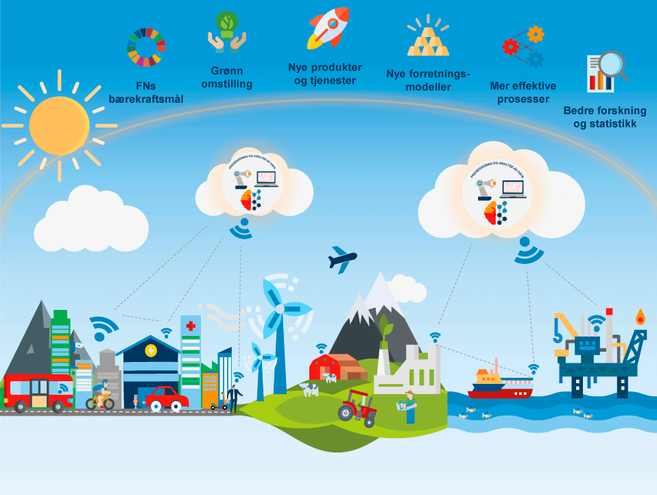Teknologi som kunstig intelligens og stordataanalyser legger grunnlaget for verdiøkende aktiviteter som får mer ut av dataene enn det som tidligere har vært mulig. Se boks 1.1 for en oversikt over viktige teknologiske drivere i dataøkonomien.