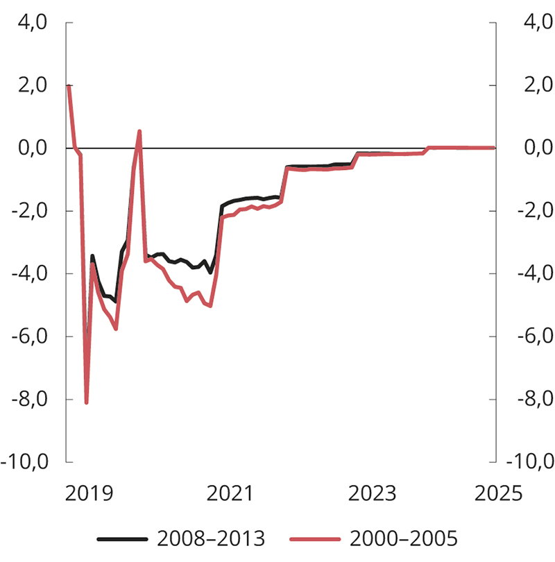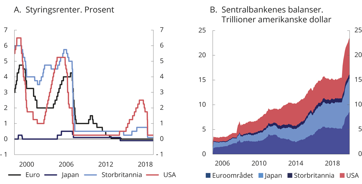 Koronapandemien har ført til historisk dype tilbakeslag i norsk og internasjonal økonomi. Omfattende finanspolitiske tiltak er satt inn for å begrense skadevirkningene. Mens tiltakspakker i andre land i stor grad må finansieres gjennom statlig gjeldsopptak, har Norge i tråd med handlingsregelen midlertidig økt bruken av fondsmidler. I 2020 ble det netto overført 298 mrd. kroner fra fondet for å dekke det oljekorrigerte underskuddet på statsbudsjettet, sammenlignet med en netto tilførsel til fondet på 18 mrd. kroner i 2019.1 Også i 2021 er det lagt opp til store netto overføringer fra fondet for å dempe de negative virkningene av koronapandemien.