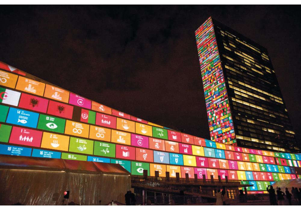 Figur 2.1 Bærekraftsmålene pryder FN-bygningen i New York.