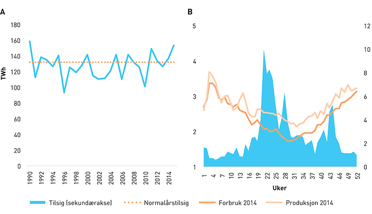 NVE har oppdatert tilsigsperioden som benyttes for å beregne normalårsproduksjonen to ganger siden 1990. Referanseperioden er i dag 1980–2010. Dette har økt anslagene på hva vannkraften kan produsere i et normalår.