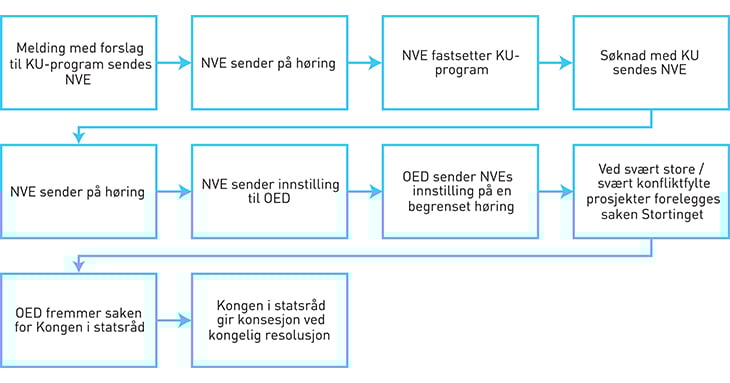 Komitologiprosessen30 ledes av Kommisjonen og omfatter departementene i EUs medlemsland og Norge. Olje- og energidepartementet deltar i arbeidet med talerett, men ikke stemmerett. Norske aktører har også mulighet til å delta i arbeidsmøter og offentlige høringer som gjennomføres av ENTSO-E og ACER.