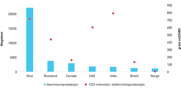 Utslippene fra industrien var i 2014 på 9,8 mill. tonn CO2-ekvivalenter, med en tilhørende energibruk inkludert råstoff på 88,8 TWh. Av dette er 2,8 mill. tonn CO2-ekvivalenter forbundet med energibruk. Dette gir en utslippsintensitet på om lag 0,023 kg CO2-ekvivalenter per kWh, og gjenspeiler at en stor del av energibruken er elektrisk.