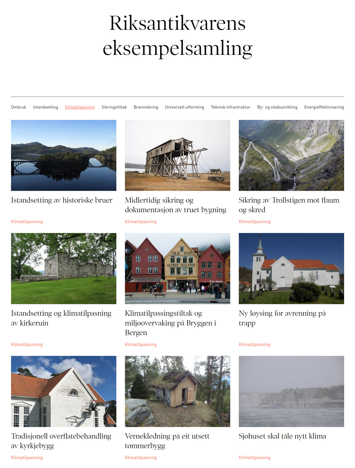 Til tross for den pågående utviklingen er kunnskapsgrunnlaget fremdeles ulikt mellom sektorer og samfunnsområder. Tilsvarende varierer erfaringsgrunnlaget om suksesskriterier, utfordringer og utviklingsbehov i arbeidet med klimatilpasning. Blant annet gir Riksrevisjonens forvaltningsrevisjon fra 2022 (Dokument 3:6 (2021–2022)) en grundig gjennomgang av myndighetenes arbeid med klimatilpasning av infrastruktur og bebyggelse, mens slike gjennomganger ikke er gjort på andre områder. Omtalen av innsatsområder og tiltak i denne planen må sees i lys av denne variasjonen i kunnskaps- og erfaringsgrunnlag og det store spennet av problemstillinger på klimatilpasningsfeltet. Planen gir ikke en uttømmende gjennomgang av alle aktuelle tema og problemstillinger på feltet, men omtaler utvalgte områder der dagens kunnskap tilsier at det er særlig behov for innsats de neste årene.