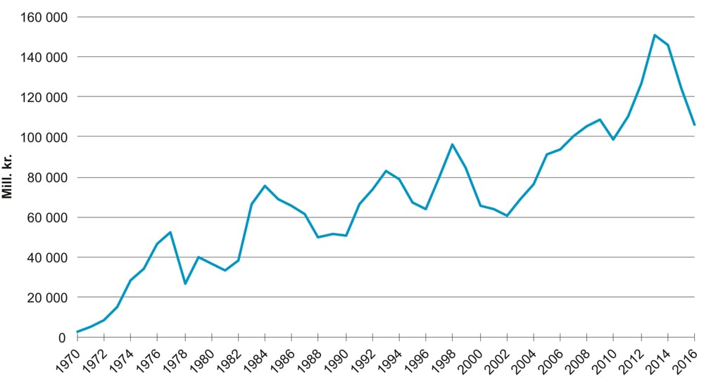 I realverdi når petroleumssektoren holdes utenfor. NOU 2015: 1. (2015). Produktivitet – grunnlag for vekst og velstand. Oslo: FIN. Produktivitetskommisjonen skriver videre at «Bare siden 1970 har de samlede inntektene for landet økt med 273 pst. Petroleumssektorens bidrag til denne veksten er betydelig, men det er først og fremst produktivitetsveksten i fastlandsøkonomien som bestemmer vår velstand.»