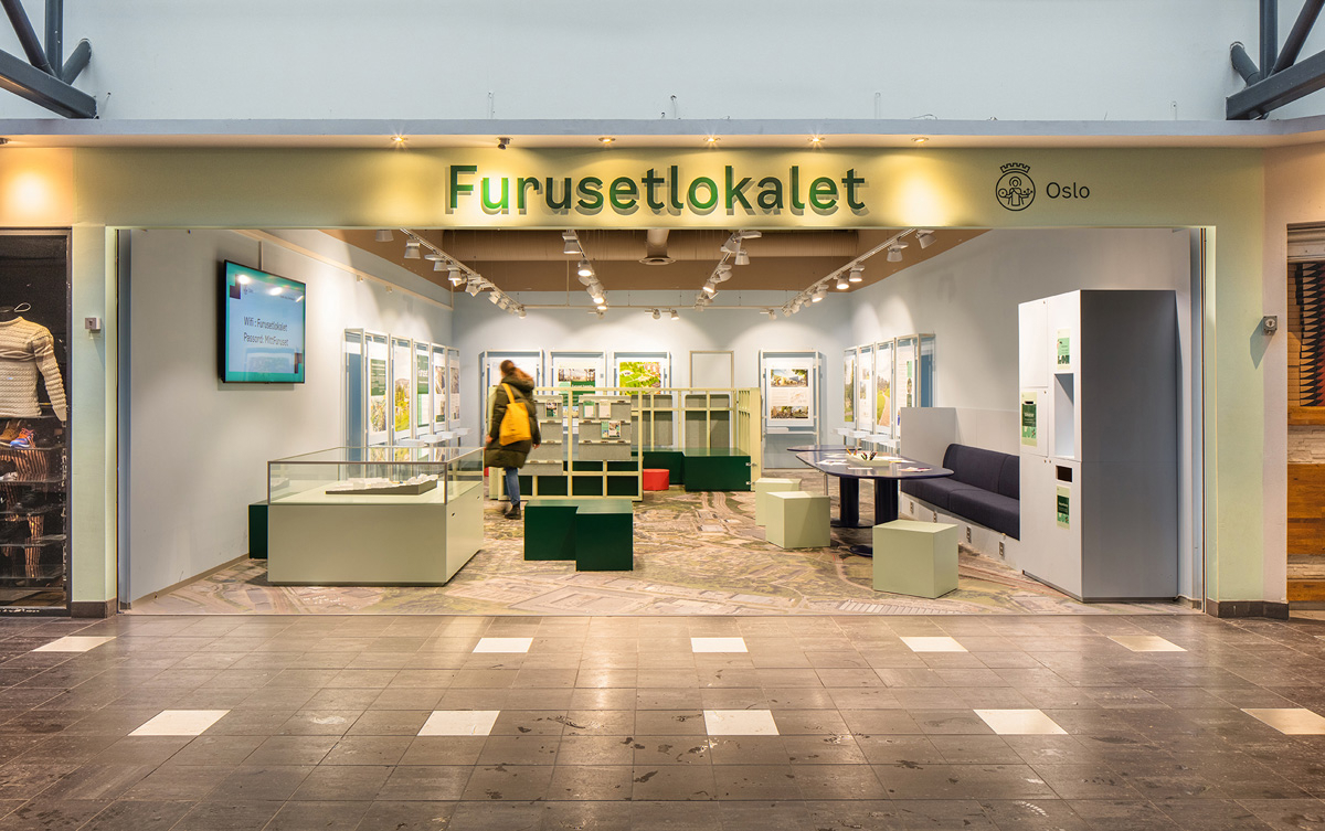 Figur 4.3 Furusetlokalet var eit utstillingsrom med informasjon, skisser og illustrasjonar av pågåande prosjekt for byutvikling på Furuset i Oslo.