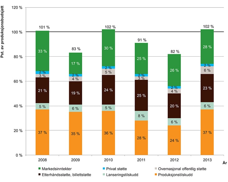 I norsk offentlig tilskuddsandel inngår tilskudd fra NFI og andre offentlige virksomheter.