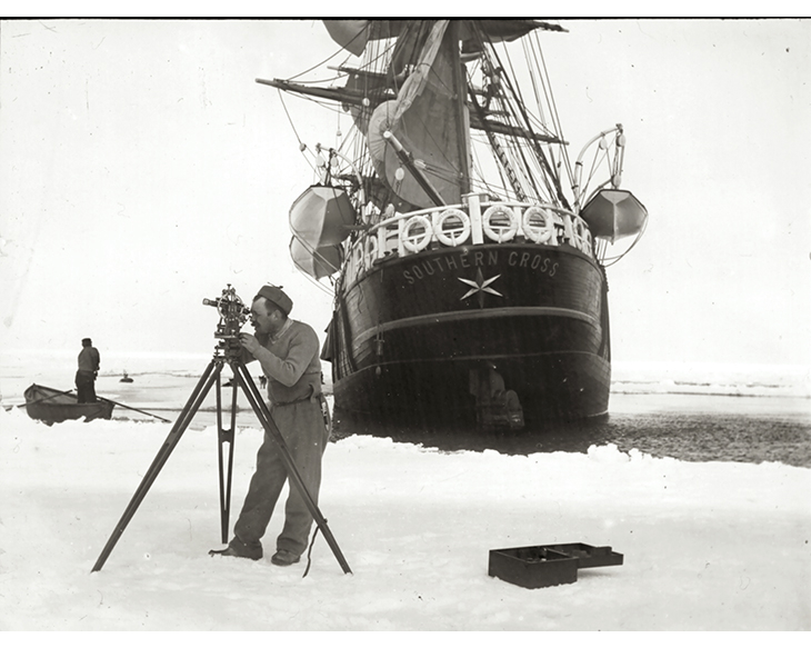 Figur 3.3 Carsten Borchgrevink i ferd med kartlegging, antarktisekspedisjonen til Carsten Boschgrevink 1898–1900. Dette var den første ekspedisjonen som overvintra på det antarktiske kontinentet.