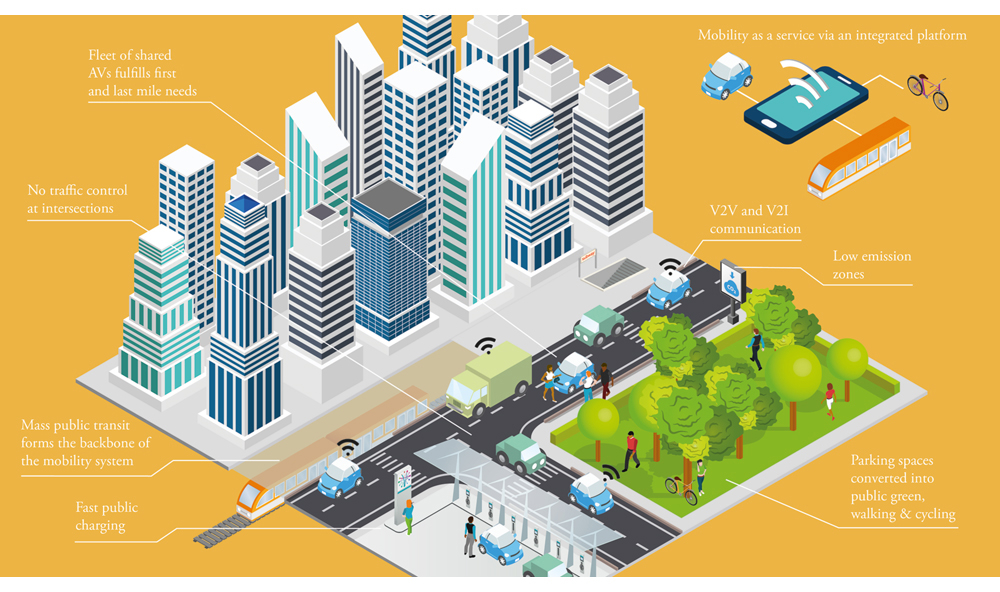 Figur 3.3 Et mulig fremtidsbilde for mobilitet i by – “Private autonomy”