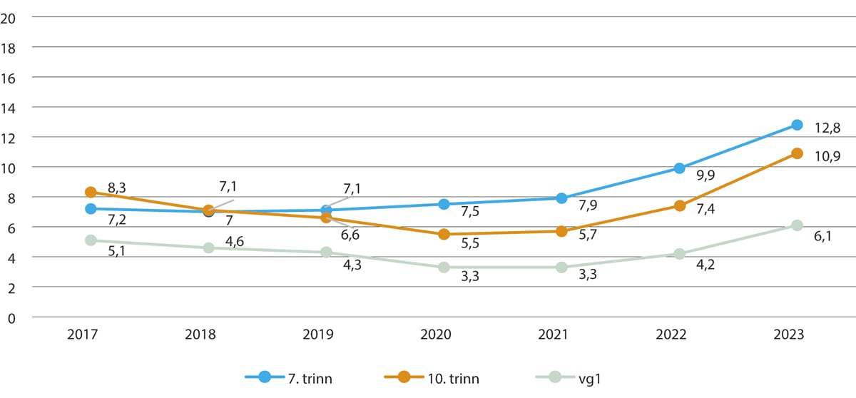 Skoleåret 2022–2023 er det første året etter pandemien som kan sammenliknes med tidligere år på grunn av de midlertidige unntakene fra fraværsføring som var på plass under pandemien.