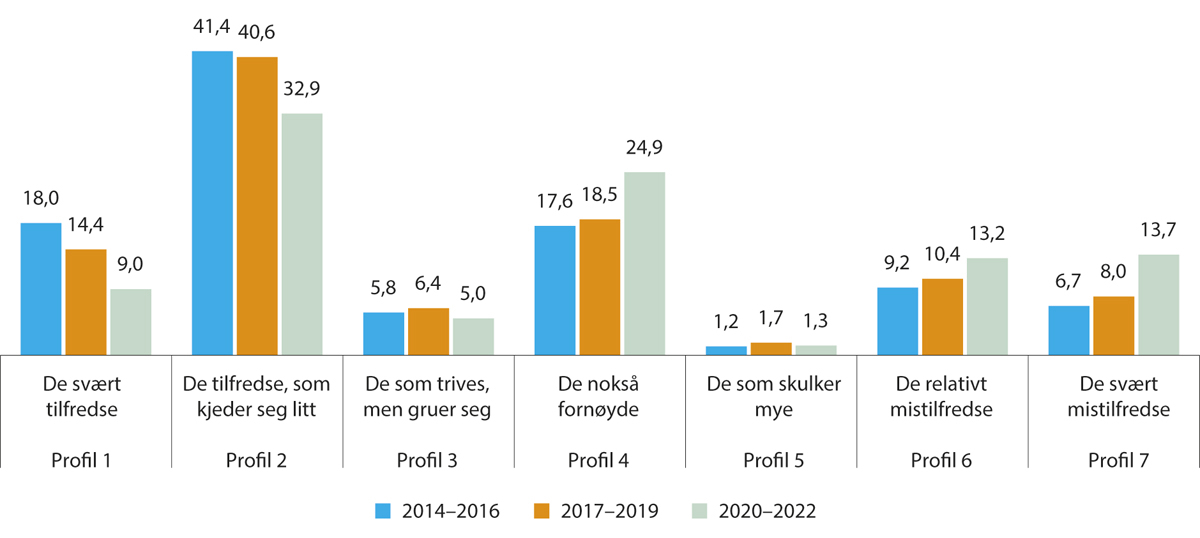 Med «forklare» menes her en sterk statistisk sammenheng mellom de nevnte utviklingstrekkene og endringene i mistrivselsprofilene.