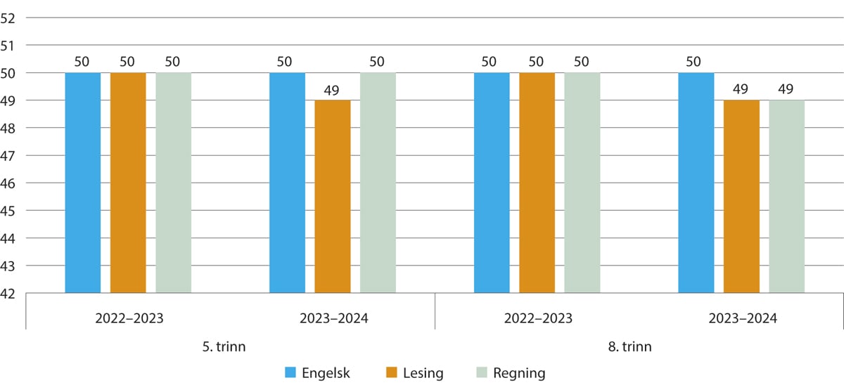 Figur 2.2 Resultater på nasjonale prøver 5. og 8. trinn i skoleårene 2022–2024