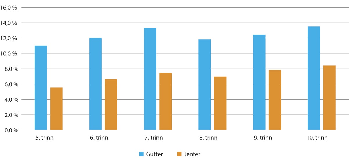 Se statistikk for grunnskolen på https://www.udir.no – læringsmiljø 5.–10. trinn.