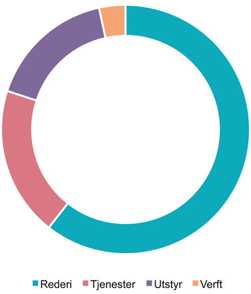Vi finner maritimt næringsliv langs hele norskekysten. Næringen er de siste 10–20 årene blitt mer konsentrert i lokale, spesialiserte klynger, jf. figur 5.3. Klyngen i Møre og Romsdal består av en sammenhengende verdikjede av selskaper som spesialiserer seg på skipsutstyr, design og bygging av offshorefartøy, samt et stort antall offshorerederier.