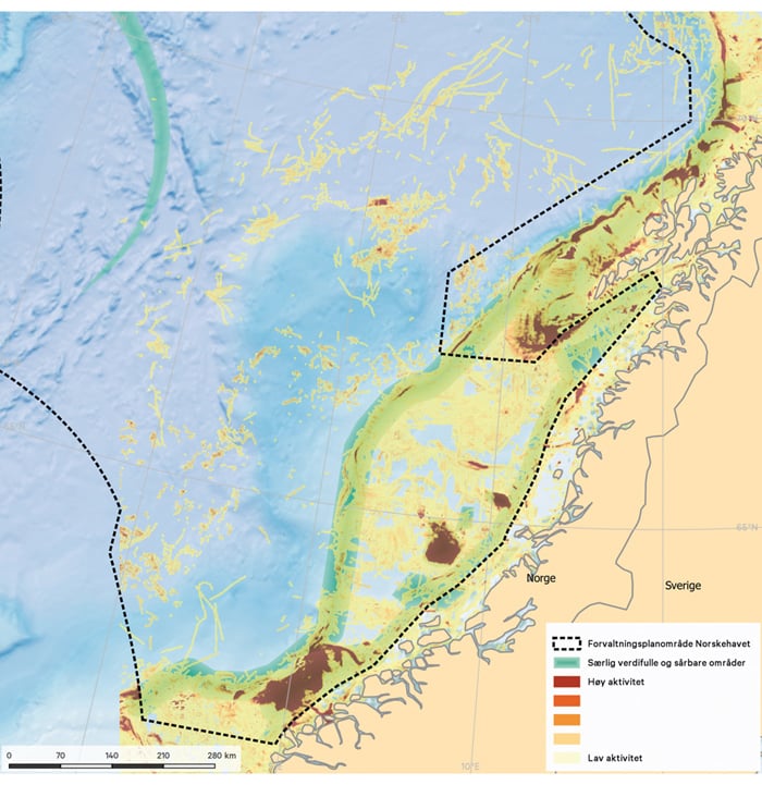 Et viktig arealmessig grep i forvaltningsplanene er identifisering av særlig verdifulle og sårbare områder. Dette er områder som har vesentlig betydning for det biologiske mangfoldet og den biologiske produksjonen i havområdet, også utenfor områdene selv. I Norskehavet gjelder dette for områdene: Remman, Froan med Sularevet, Mørebankene, Haltenbanken og Sklinnabanken, Iverryggen, Vestfjorden, Jan Mayen og Vesterisen, Eggakanten, Den arktiske front og Kystsonen. Kunnskapen om havbunnen i de særlige verdifulle og sårbare områdene i Norskehavet har blitt styrket og miljøverdiene bekreftet gjennom MAREANO. Målet i forvaltningsplanen er at aktiviteter i særlig verdifulle og sårbare områder skal foregå på en måte som ikke truer områdenes økologiske funksjoner eller naturmangfold. De særlig verdifulle og sårbare områdene er nærmere beskrevet og kartfestet i kapittel 3.4. Både bærekraftig bruk av havområdene og bevaring av områder med viktige miljøverdier inngår i en helhetlig forvaltning.