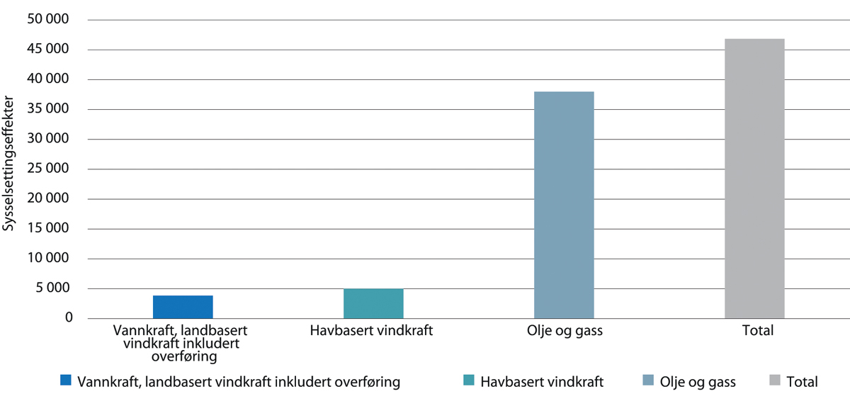 Kraftsektoren sysselsetter også folk i alle deler landet. Medregnet direkte og indirekte sysselsatte utgjorde kraftsektoren om lag 33 000 personer i 2019, av disse var om lag 15 000 direkte sysselsatt (Menon Economics 2021). De fornybare kraftressursene bidrar i dag til verdiskaping, industriutvikling og energiomlegging i hele landet, og skaper store inntekter til felleskapet. En analyse utført for Olje- og energidepartementet (Multiconsult, 2020) viser at nasjonal omsetning fra salg av kraft til sluttbruker i 2019 utgjorde 29,2 mrd. kroner. Omsetningen til alle nettselskapene var 40,5 mrd. kroner i 2019. Verdien av tjenester fra rådgivere og andre tjenesteleverandører i kraftmarkedet i 2019 var på om lag 1,5 mrd. kroner.