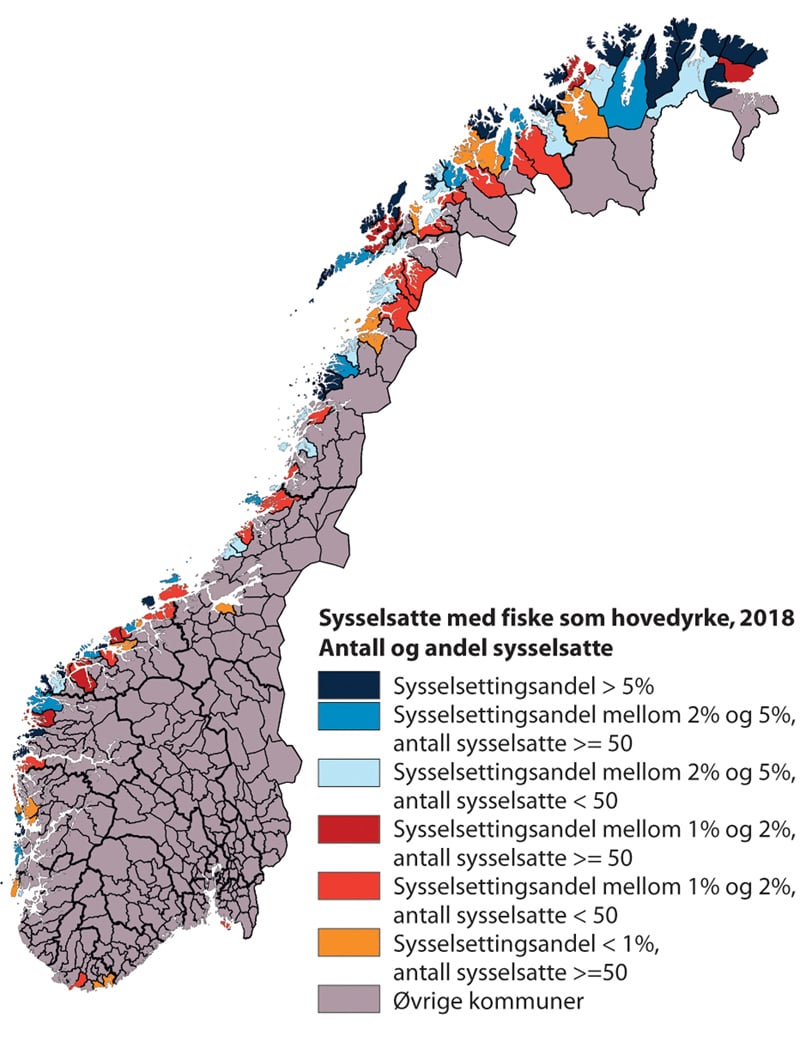 Den direkte sysselsettingen i fiske og fangst var i 2014 på om lag 9 100 årsverk. De siste tiårene har næringens struktur utviklet seg i en retning av at fiskeressursene fiskes med færre fartøy og fiskere. Dette har ført til økt lønnsomhet i næringen, mens antall arbeidsplasser er redusert. I et økonomisk perspektiv gir strukturtiltak som reduksjon av antall fartøyer, økt fangstgrunnlag og bedre kapasitetsutnyttelse en effektivitetsgevinst for de gjenværende aktørene i fiskeflåten. Totalt sett har de siste tiårene med strukturering av fiskeflåten, teknologisk utvikling og en mer miljømessig forvaltning av fiskeressursen ført til økt mengde fangst per fisker. Antall registrerte fiskefartøy er redusert fra vel 14 000 i 1995 til i underkant av 6 000 i 2015.