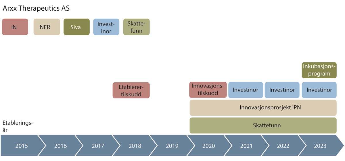 Figur 7.6 Illustrasjon av oppstartsbedrifters virkemiddelbruk - Arxx Therapautics AS