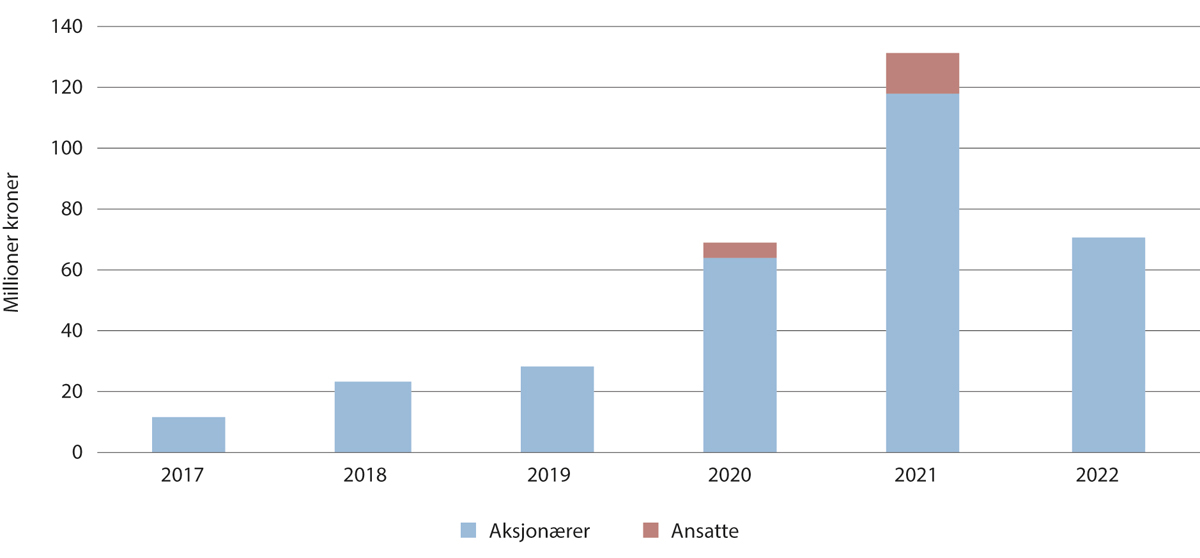 Kilde: SSB (tabell 12646). Beregninger: Nærings- og fiskeridepartementet.