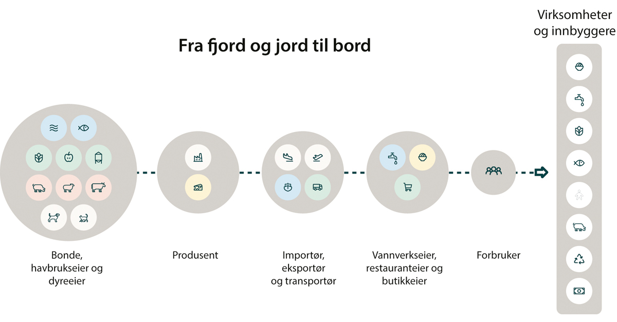 Helse- og omsorgsdepartementet, Nærings- og fiskeridepartementet, Landbruks- og matdepartementet.