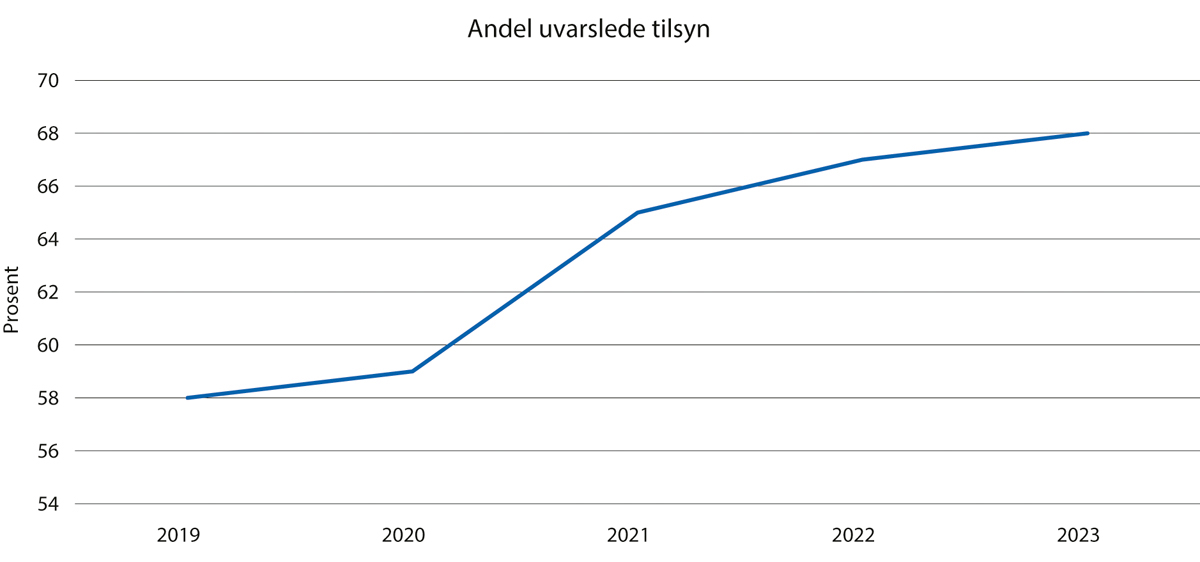 Figur 4.2 Andel uvarslede tilsyn fra Mattilsynet 2019–2023.