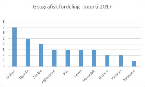 Malawi og Uganda er de to landene med flest saker med reaksjon i 2017. Disse var også topp to i 2016 og er historisk blant de landene med mange saker registrert. 1)